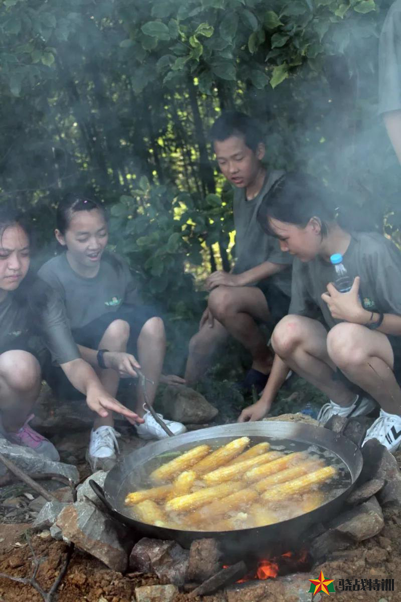 生火是个技术活儿,大家点了很多次都没点着,最后还是教官帮忙解决了难题,燃起来后火很旺,大家自告奋勇地要当烧火师傅,当掌厨大师。